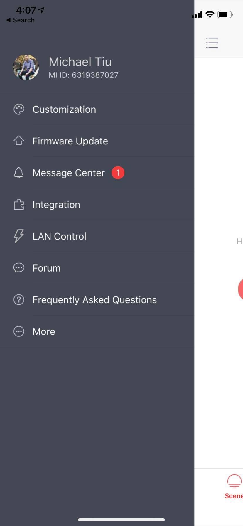 @Shindouz Only found a few scens, no device, please give me a screenshot about Yeelight APP(left menu + devices)